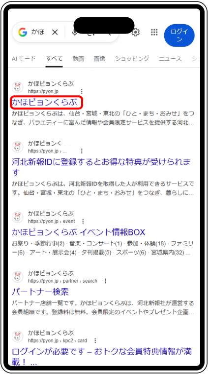 検索サイトで「かほピョンくらぶ」を検索。