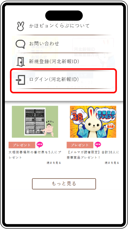 「ログイン(河北新報ID)をタップ。