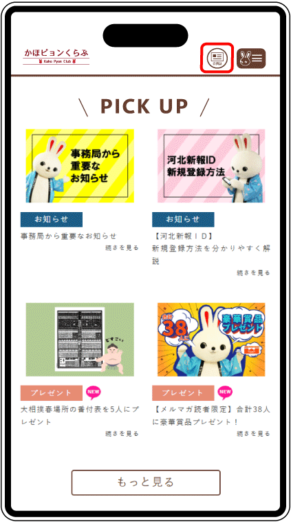 右上のかほピョンボタン(茶色)をタップ。