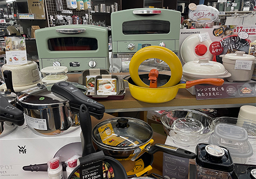 創業180年のオクダならではの本格的な家庭用品の品ぞろえ。それに加えて輸入雑貨や衣料品も取り扱っています。